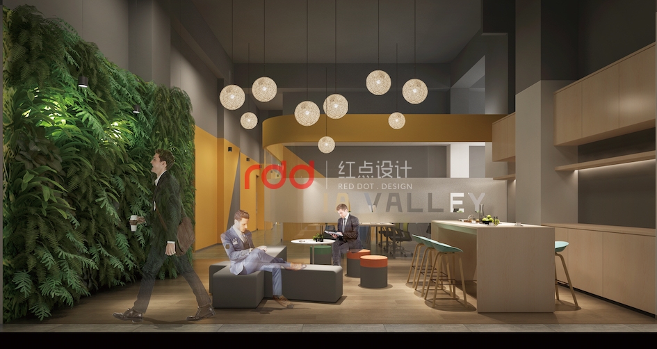 前臺休閑區是一個企業靈魂的體現,也是靈感迸發的地方。年輕活躍的氛圍是最好的藥引,因此在色彩的設計上,設計師大膽運用橙黃色,這一色調一致延伸到其他空間。