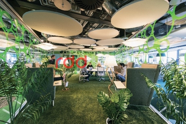 主題設計讓空間化身成百變樂園 這棟新辦公室里,規劃了許多正式與非正式的會議區,加入了不同的主題設計,宛如百變樂園一般。像是叢林穴洞以及異國風情風格等,讓員工能在最放松、自在的環境下,激發平日苦思不著的創意與靈感。