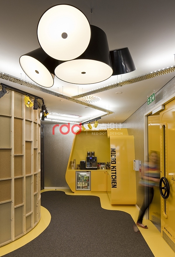 豐富有趣的場(chǎng)景真的一一實(shí)現(xiàn),包括隨性的座位或沙發(fā),以及一面宛如星光大道的YouTube名人堂走道,還有全部由公司內(nèi)部制作并可以立即制播、放送到各角落平面螢?zāi)坏膶I(yè)設(shè)計(jì);另一邊有著天鵝絨簾幕的電影放映室,放著舒適抱枕的軟墊沙發(fā)、皮椅;”造物主空間”( Creator Space )是設(shè)計(jì)師的一個(gè)心意,讓 YouTube 內(nèi)部的所有”制片人”盡情享受這個(gè)辦公室的神奇創(chuàng)作過程。這些照片中只是幾個(gè) YouTube 創(chuàng)意辦公室設(shè)計(jì)的亮點(diǎn),好玩的細(xì)節(jié)得要各位睜大眼睛搜尋。透露給大家, Freshmore 團(tuán)隊(duì)最喜歡的設(shè)計(jì),是那間復(fù)制了英國家喻戶曉的電視人物 Del Boy 家的客廳。如果是你,最能提高工作斗志的又是哪個(gè)場(chǎng)景?